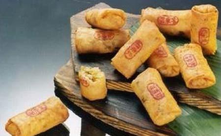春餅也是潮州小食之佳品。其外觀呈長(zhǎng)方形,金黃悅目,外酥內(nèi)嫩;味濃香溢,美味爽口。春餅古稱(chēng)“春卷”,我們的祖先為祈豐收康樂(lè)吉祥幸福,便在立春日制作此食品祭天。