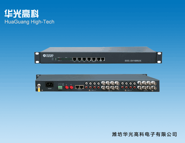 HG-DV16MUX多業務視頻光傳輸平臺是華光高科電子有限公司根據市場需求,適時開發出基于視頻傳輸的多業務光傳輸平臺,采用國際最先進的數碼視頻高速傳輸技術,將同時把16路視頻,16路音頻,2路E1接口,4路數據(RS485/RS422/RS232/),8路開關量、8路電話(FXS /FSO/EM/載波/磁石,最多克擴60路電話)、多路10M/100M/1000M以太網等等接口在單芯或雙芯光纖上無失真、高質量傳輸。SOC- DV16MUX多業務視頻光傳輸平臺采用全數字無壓縮技術,因此能支持任何高分辨率運動、靜止圖像無失真傳輸;克服了常規的模擬調頻、調相、調幅光端機多路信號同傳時交調干擾嚴重、容易受環境干擾影響、傳輸質量低劣、長期工作穩定性差等致命缺點。并可同時提供多路視頻、音頻、數據、電話語音、以太網在光纖上同時傳輸,大大節省了用戶設備投資成本,提高了光纜利用率。系統采用結構化、模塊化設計,采用~220V和-48V同時供電,可接蓄電池,保證設備不間斷可靠的運行,并可納入網管系統,具有完善的網管功能。用戶可根據現場具體情況靈活選擇或定制配置。