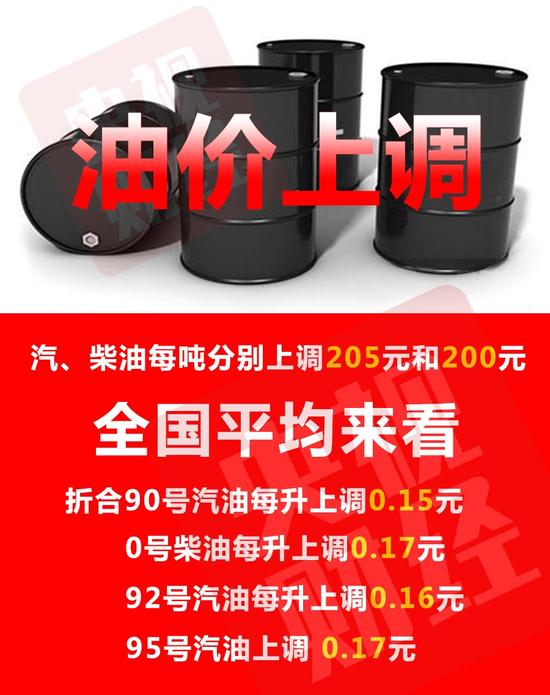 全國(guó)平均來(lái)看,折合90號(hào)汽油每升上調(diào)0.15元,92號(hào)汽油每升上調(diào)0.16元,95號(hào)上調(diào)0.17元,0號(hào)柴油每升上調(diào)0.17元。按一般家用汽車油箱50L容量估測(cè),加滿一箱92號(hào)汽油將多花約8塊錢。